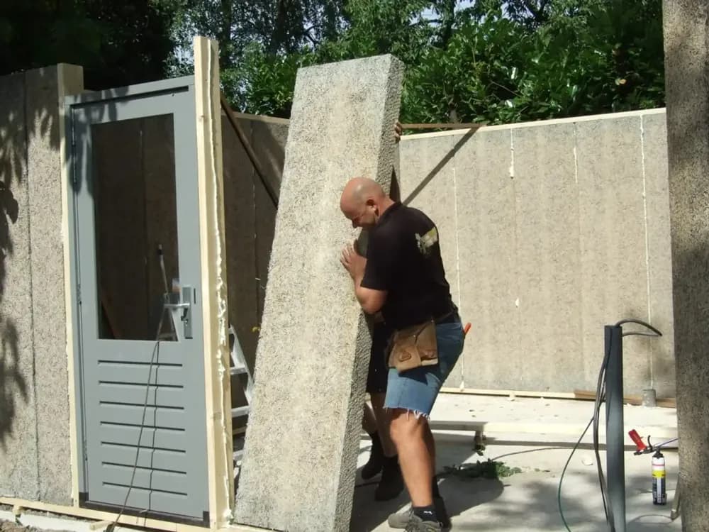 The Reinforced WWCB Board can also be used as load-bearing wall panel for construction of economic housing, garages, sheds, etc. For this application, the board has only one reinforcement pole embedded, providing for sufficient load-bearing.