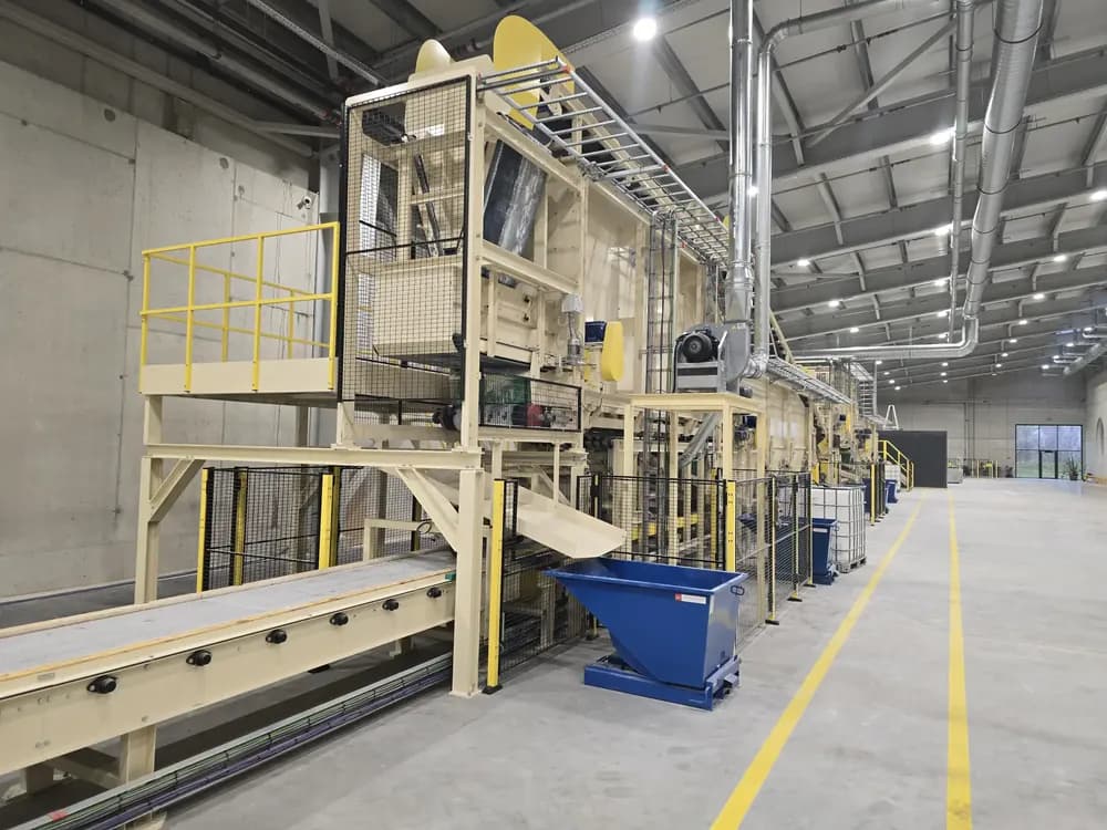 The Forming Station is the heart of the production line, where boards are formed with a perfectly even mat. Wood wool is precisely spread to ensure uniform thickness. The modern Forming Station with integrated mixture buffer systems now has each of the forming units spreads the mixture in the direction of the mould transport, improving board quality. This complex machine combines several functions, including mould cleaning and oiling, mixture spreading and combing, as well as integrated pre-press and side-pressing devices, ensuring an even formed mat.