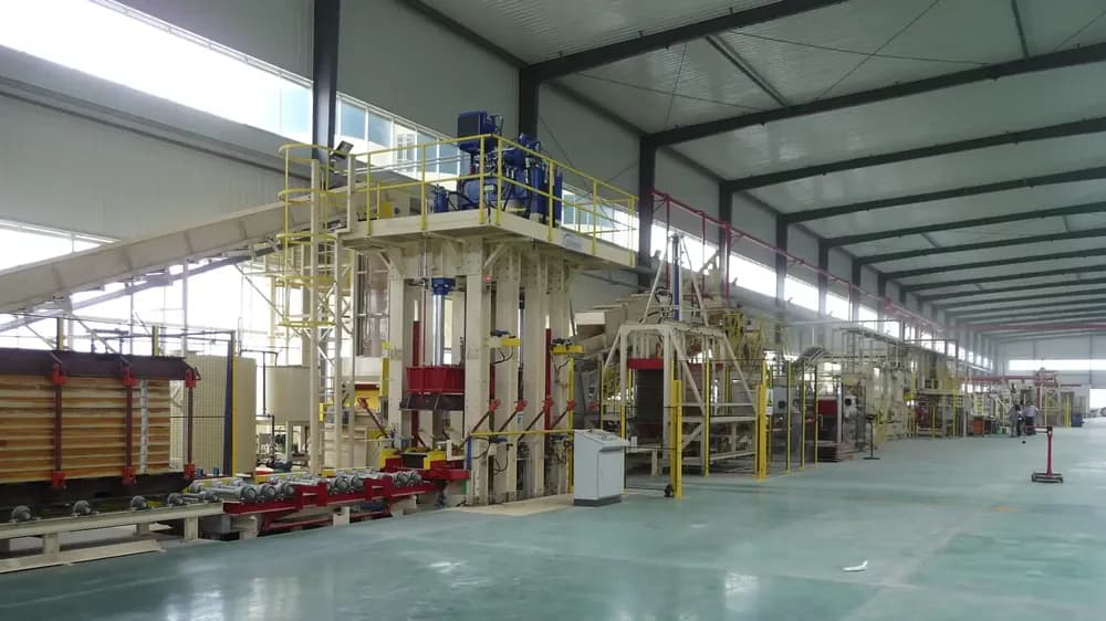 Enhance your existing WWCB line by adding a clamping press after the stacking press to produce medium-density construction boards. This upgrade requires approximately 12 meters of floorspace, including stack conveyors and safety fences. It enables the production of medium-density boards with structural strength for flooring, permanent shuttering, and SIP panels, alongside acoustic and general construction boards.